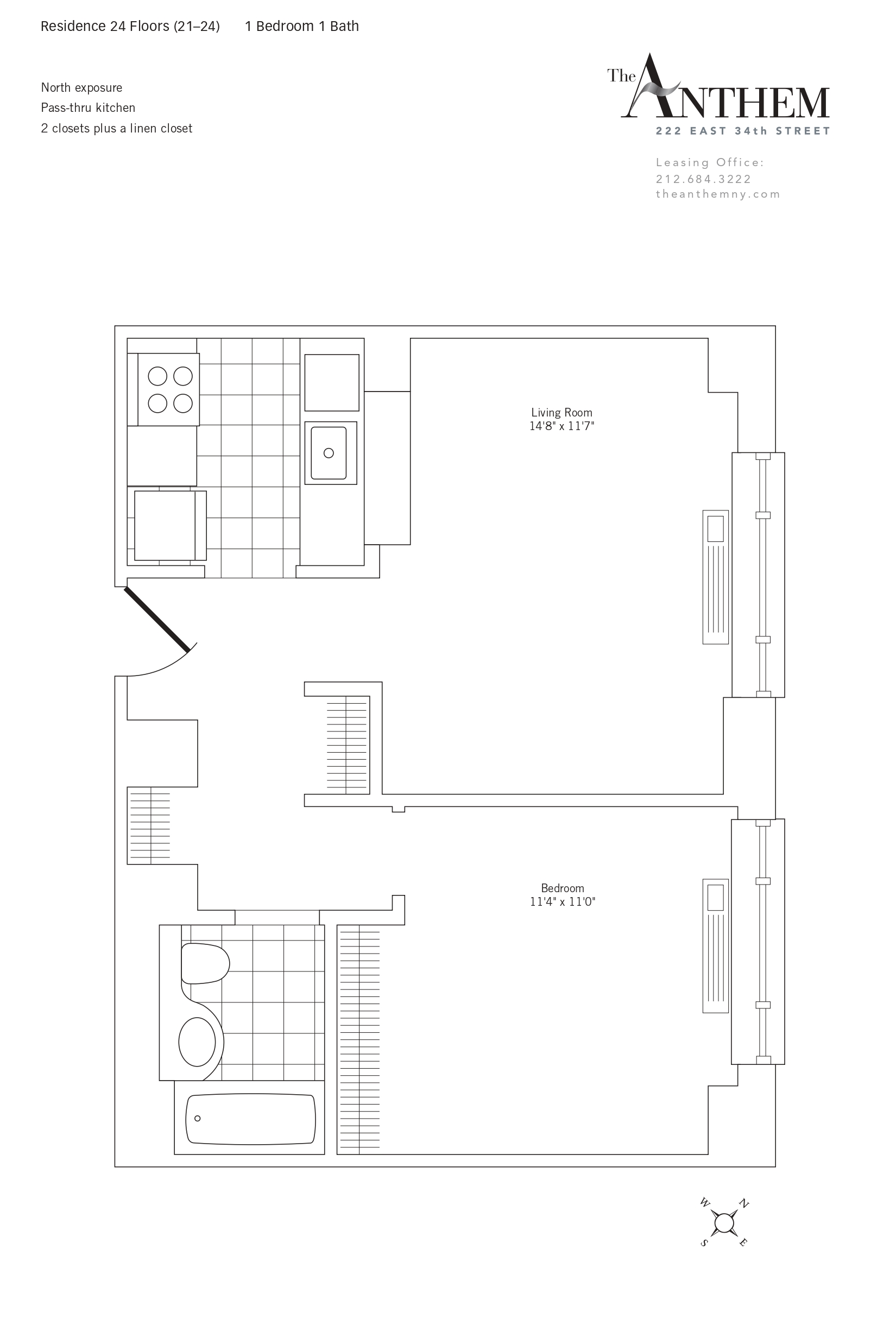 Corner apartment facing North and West offers breathtaking skyline view from the East River to the Hudson. This apartment also features a dining alcove, windowed kitchen, washer/dryer and walk-in closet.